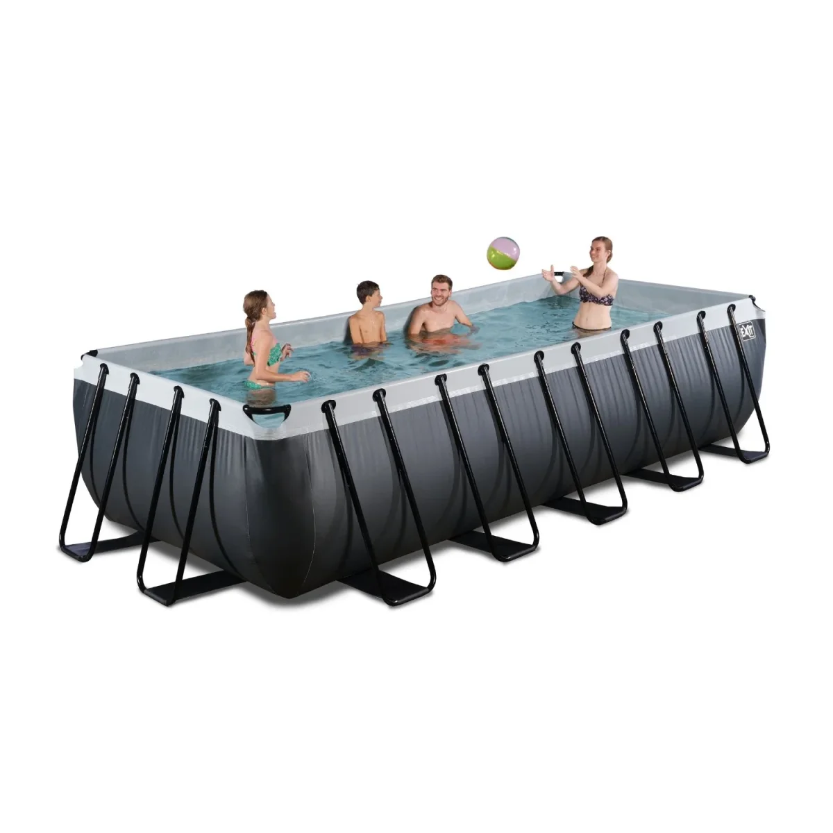 La piscine EXIT Cuir Noir 540 x 250 x 122 cm est une piscine à cadre rectangulaire avec un imprimé cuir noir. Cette grande piscine est équipée en standard d’une pompe de filtration et d’escaliers de piscine, avec lesquels vous pouvez entrer et sortir de la piscine en toute sécurité. La piscine EXIT Black Leather a un look luxueux grâce au motif cuir unique. L’extérieur noir et l’intérieur gris clair créent une piscine élégante et moderne dans le jardin. La piscine EXIT est équipée de parois solides 3 couches de PVC et polyester pour une solidité optimale.