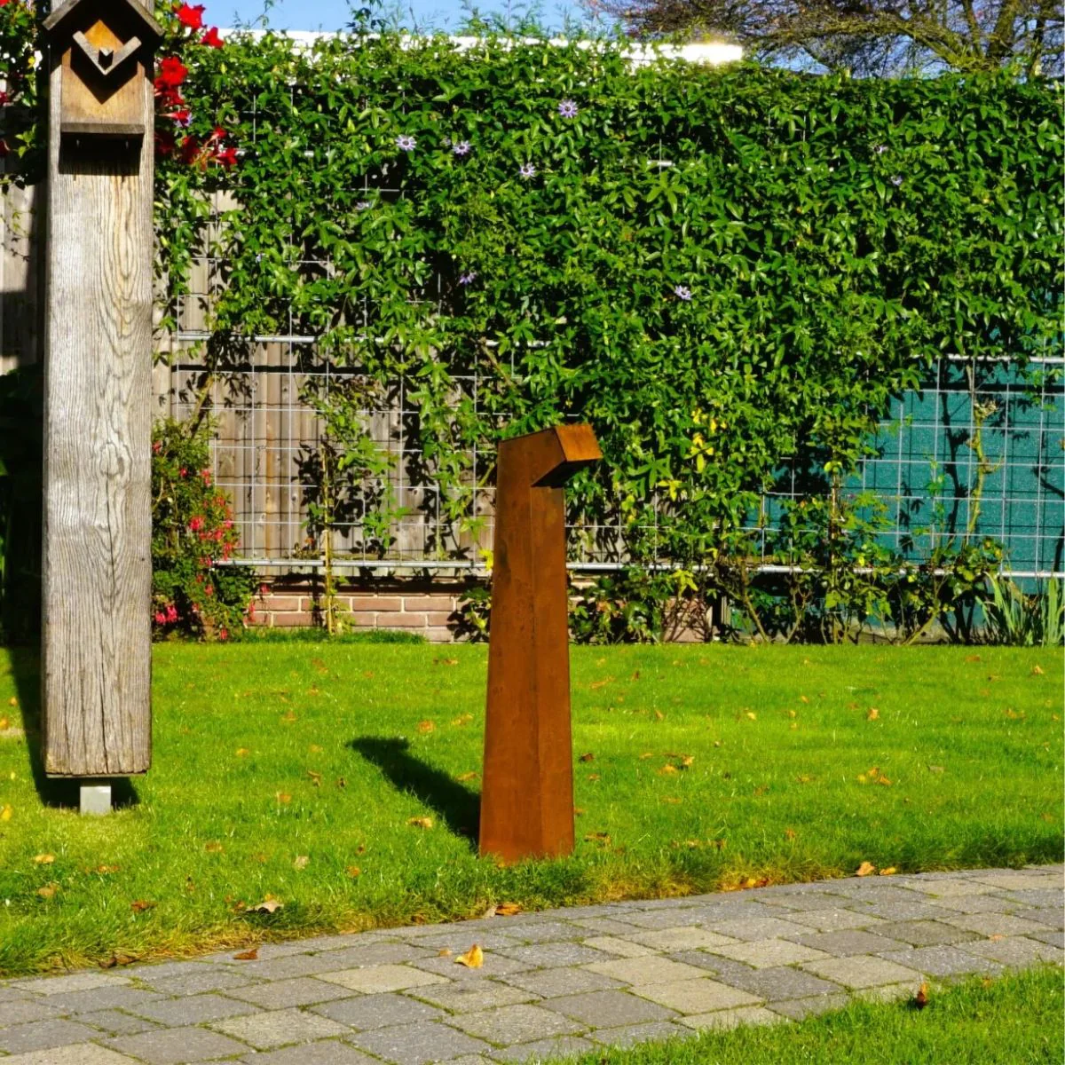 - Acier Corten durable : la lampe est fabriquée en acier Corten de type A de 2 mm d’épaisseur, réputé pour sa robustesse et sa capacité à développer une belle couleur rouille naturelle au fil du temps.